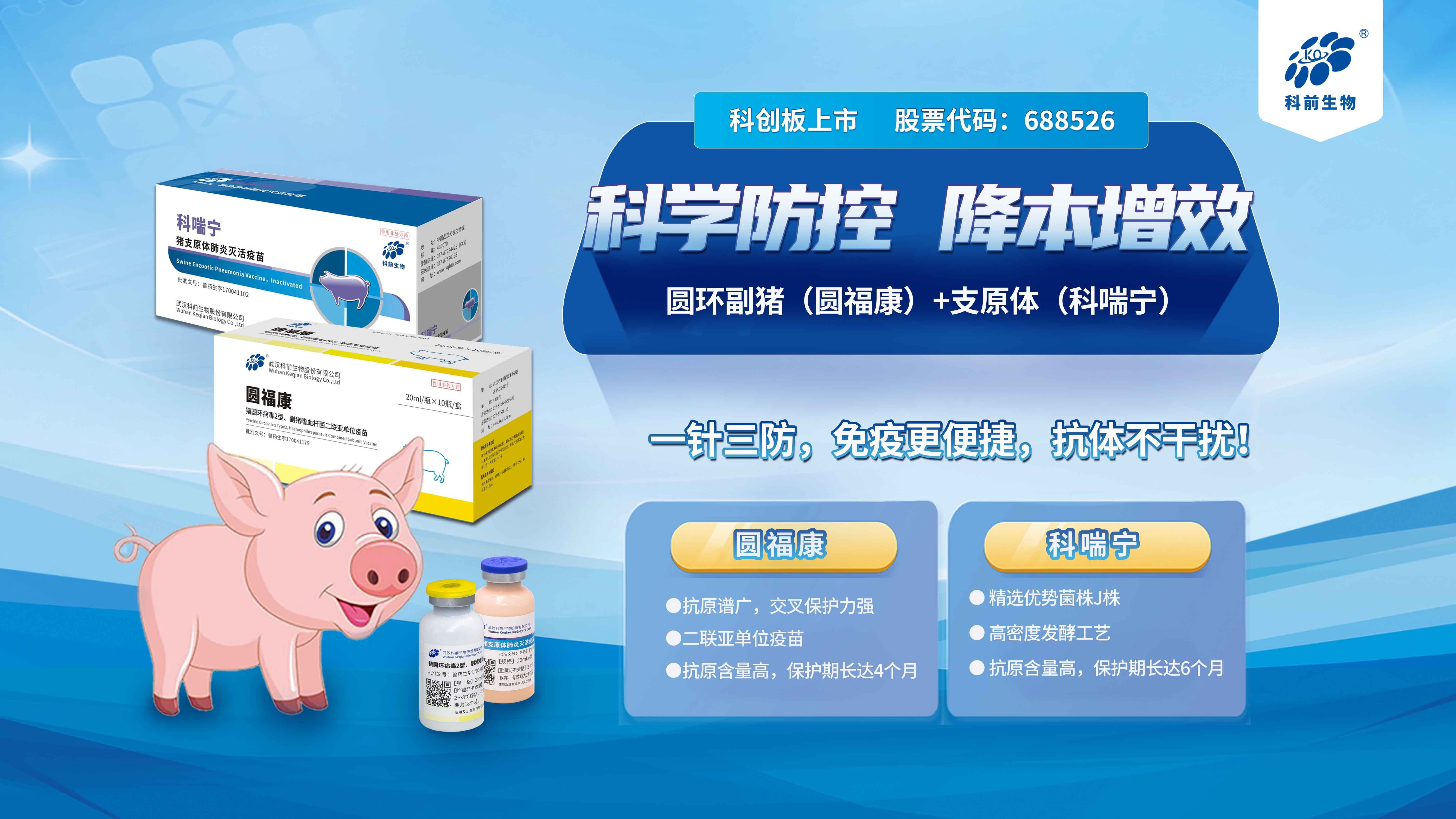 科前生物成立于2001年,专注于兽用生物制品研发、生产、销售及动物防疫技术服务,公司是国家发改委授予的“国家高新技术产业化示范工程”重点高新技术企业。